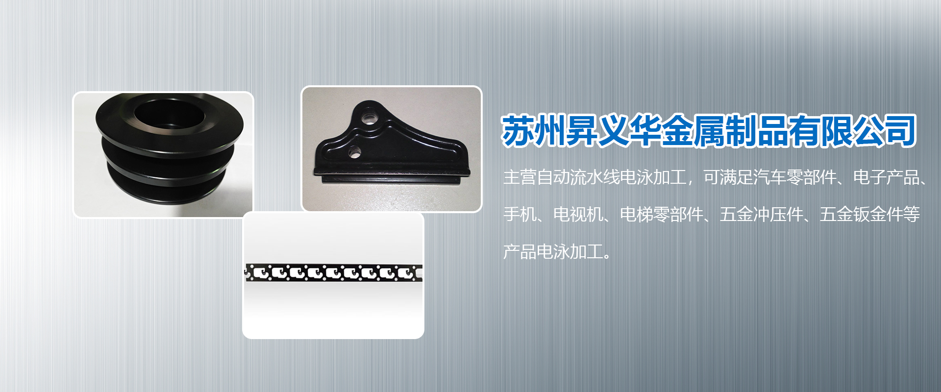 蘇州昇義華金屬制品有限公司是一家進(jìn)行各類金屬表面處理專業(yè)公司。主營(yíng)自動(dòng)流水線電泳加工,可滿足汽車零部件、電子產(chǎn)品、手機(jī)、電視機(jī)、電梯零部件、五金沖壓件、五金鈑金件等產(chǎn)品電泳加工。